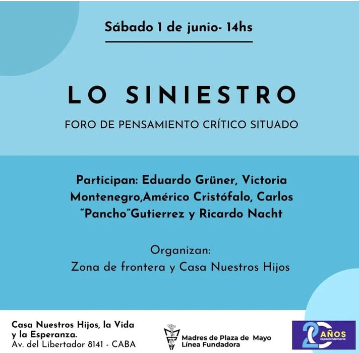 Desde las 14hs se realizará junto a Zona de frontera Lo siniestro, foro de pensamiento situado.
