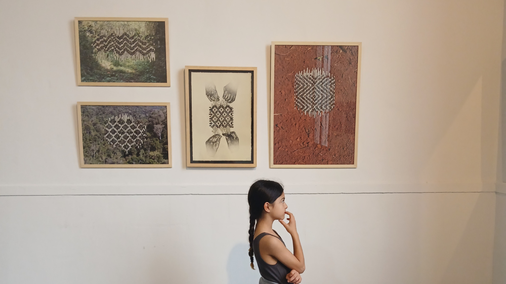 La exhibición de papel tejido se convierte en memoria y resistencia, dejando así brotar la historia y forjando la raíz de una trama que resiste. El trabajo que se expone es una reflexión materializada sobre el saqueo y la pérdida cuando el paisaje se transforma a la fuerza. ¿Cómo se modifica el ecosistema cuando irrumpe la deforestación? ¿Qué se quiebra cuando el paisaje es arrasado?